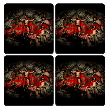 300 the spartans, ΣΕΤ 4 Σουβέρ ξύλινα τετράγωνα (9cm)