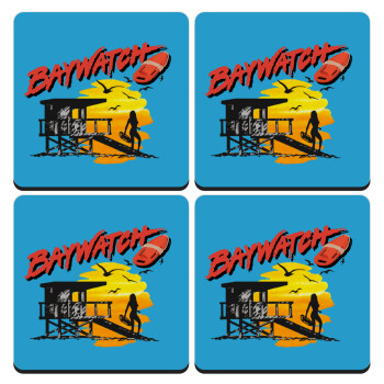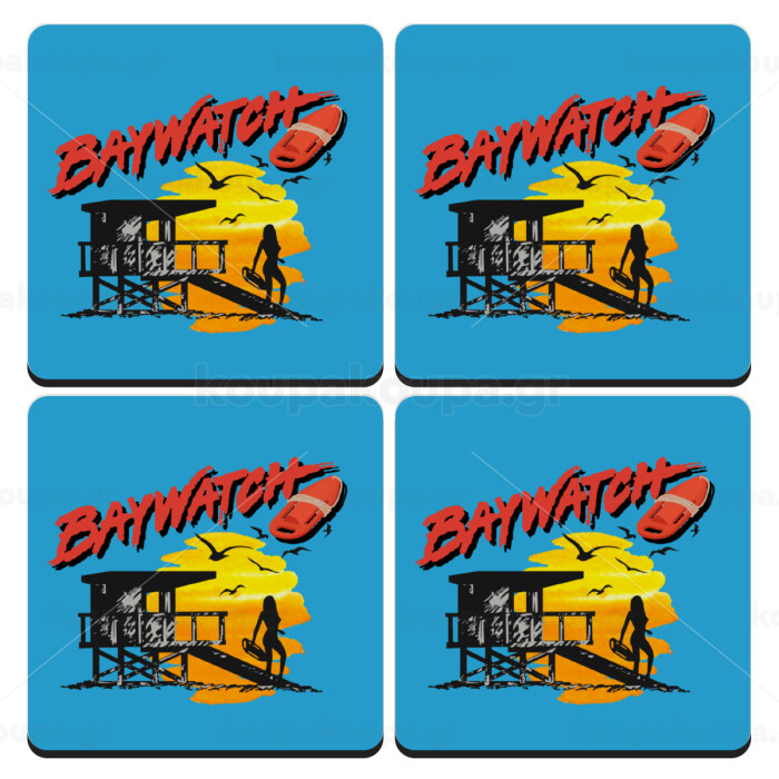 Baywatch, ΣΕΤ 4 Σουβέρ ξύλινα τετράγωνα (9cm)
