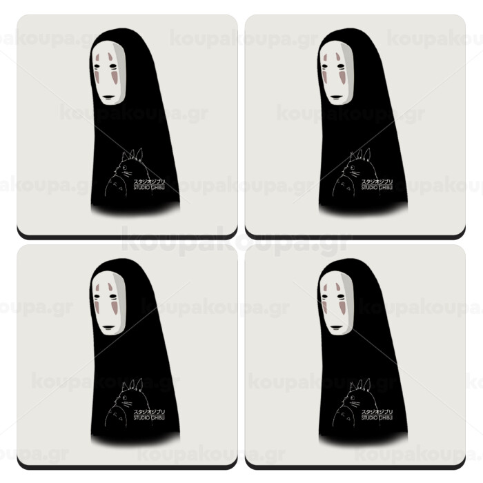 Spirited Away No Face, ΣΕΤ 4 Σουβέρ ξύλινα τετράγωνα (9cm)