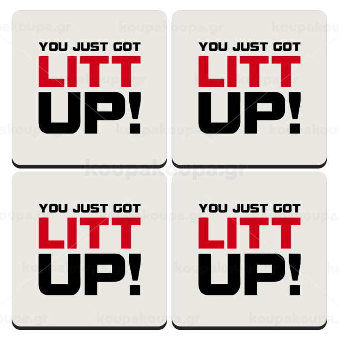 Suits You Just Got Litt Up! , ΣΕΤ 4 Σουβέρ ξύλινα τετράγωνα (9cm)