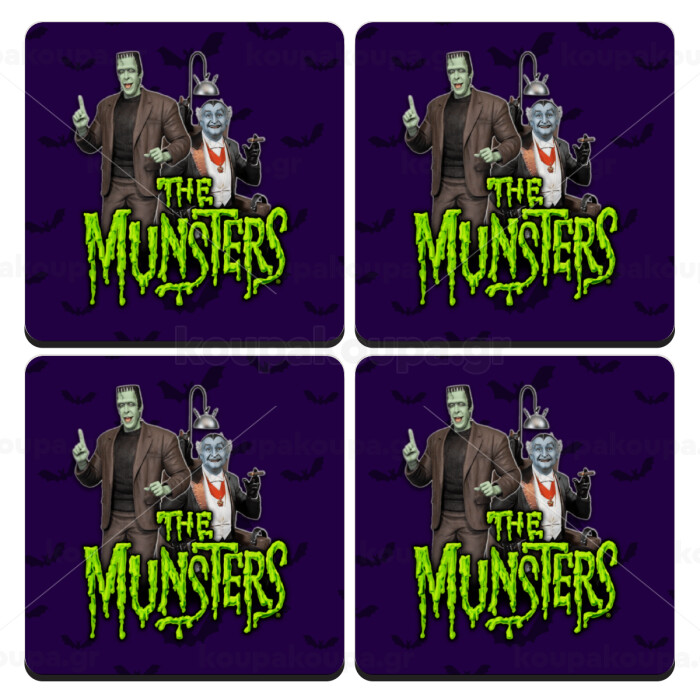 The munsters, ΣΕΤ 4 Σουβέρ ξύλινα τετράγωνα (9cm)