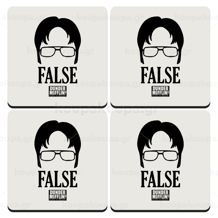 The office Dwight false, ΣΕΤ 4 Σουβέρ ξύλινα τετράγωνα (9cm)