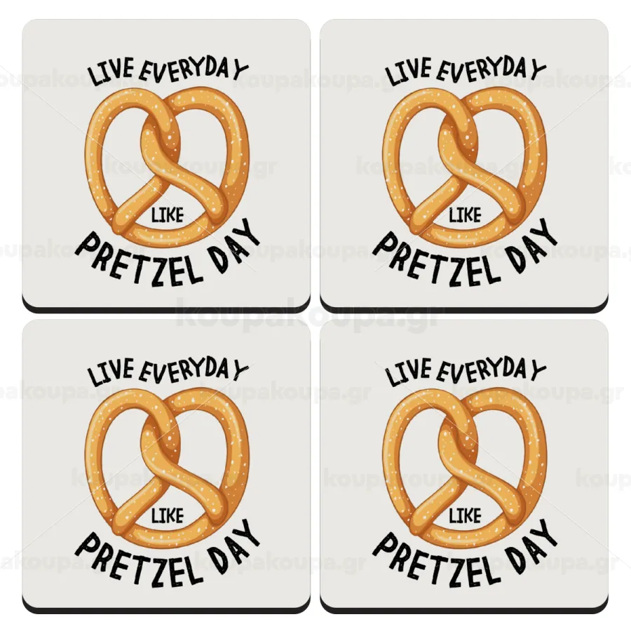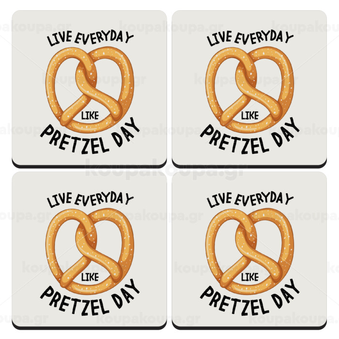 The office, Live every day like pretzel day, ΣΕΤ 4 Σουβέρ ξύλινα τετράγωνα (9cm)