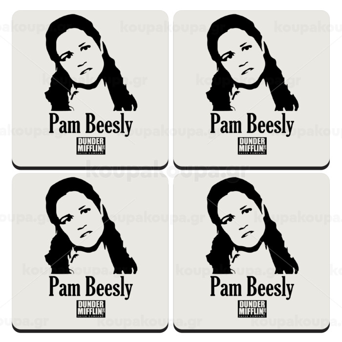 The office Pam Beesly, ΣΕΤ 4 Σουβέρ ξύλινα τετράγωνα (9cm)