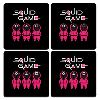 The squid game characters, ΣΕΤ 4 Σουβέρ ξύλινα τετράγωνα (9cm)
