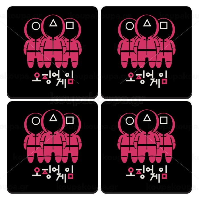 The squid game, ΣΕΤ 4 Σουβέρ ξύλινα τετράγωνα (9cm)