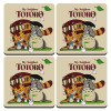 Totoro and Cat, ΣΕΤ 4 Σουβέρ ξύλινα τετράγωνα (9cm)