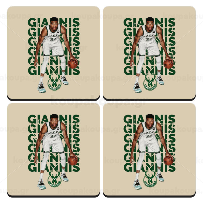 Giannis Antetokounmpo, ΣΕΤ 4 Σουβέρ ξύλινα τετράγωνα (9cm)