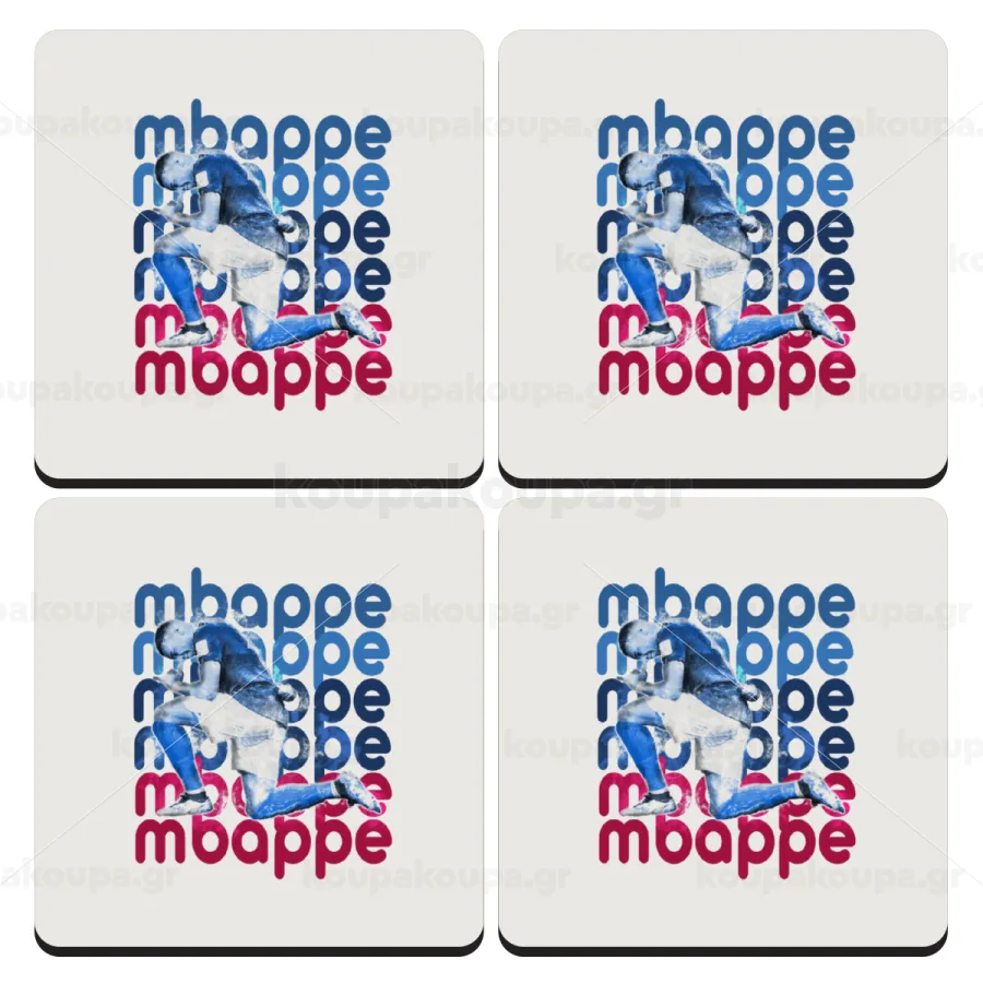 Kylian Mbappé, ΣΕΤ 4 Σουβέρ ξύλινα τετράγωνα (9cm)