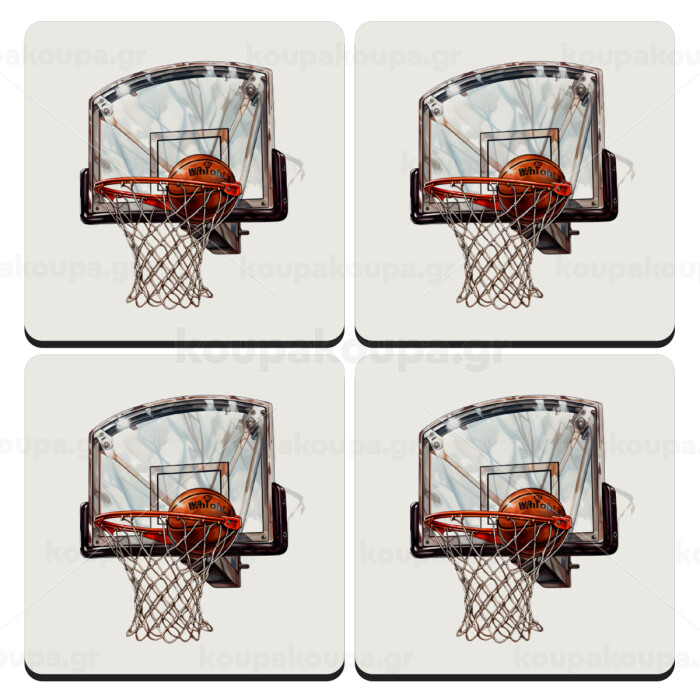Basketball, ΣΕΤ 4 Σουβέρ ξύλινα τετράγωνα (9cm)