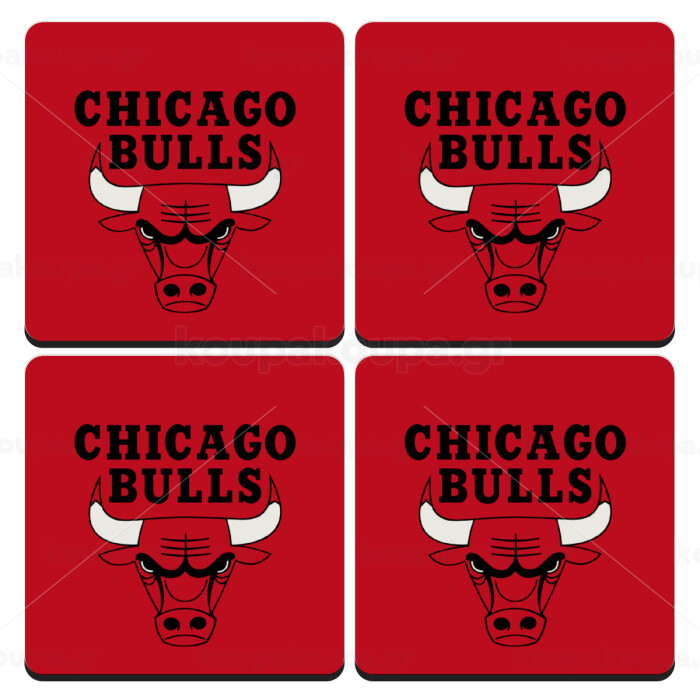 Chicago Bulls, ΣΕΤ 4 Σουβέρ ξύλινα τετράγωνα (9cm)