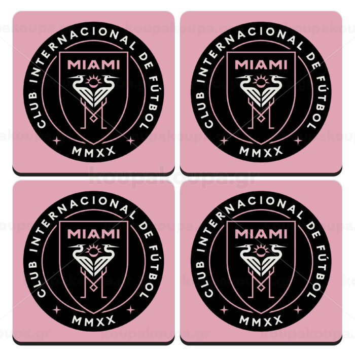 Inter Miami CF, ΣΕΤ 4 Σουβέρ ξύλινα τετράγωνα (9cm)