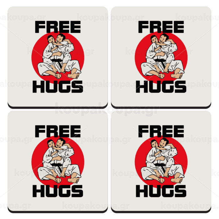 JUDO free hugs, ΣΕΤ 4 Σουβέρ ξύλινα τετράγωνα (9cm)
