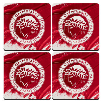 Olympiacos F.C., ΣΕΤ 4 Σουβέρ ξύλινα τετράγωνα (9cm)