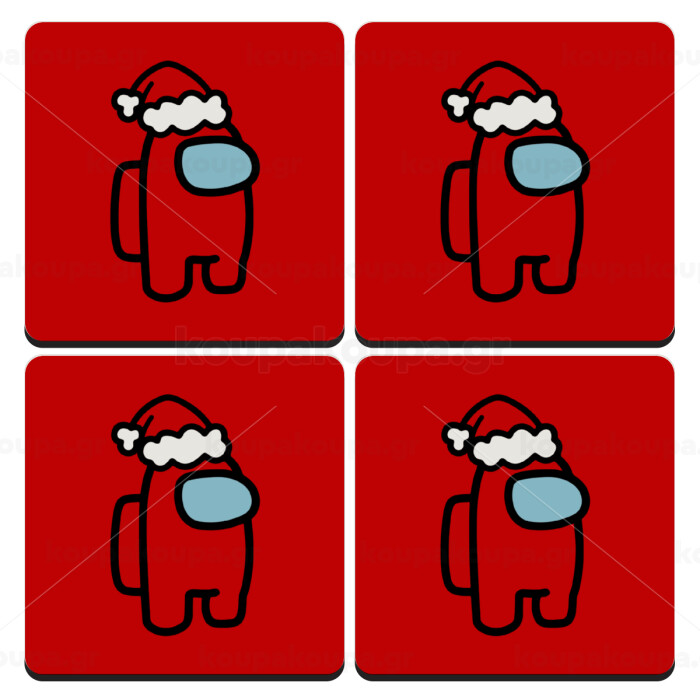 Among US Santa, ΣΕΤ 4 Σουβέρ ξύλινα τετράγωνα (9cm)