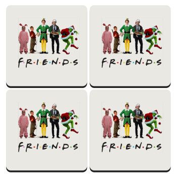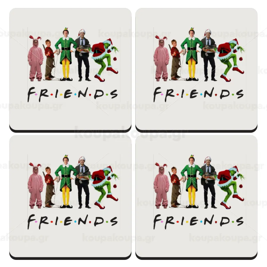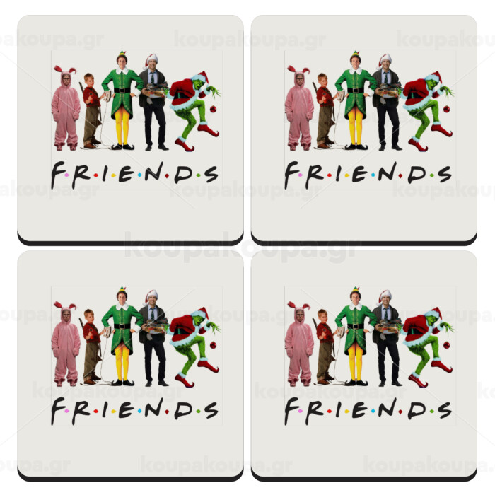 Christmas FRIENDS, ΣΕΤ 4 Σουβέρ ξύλινα τετράγωνα (9cm)