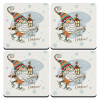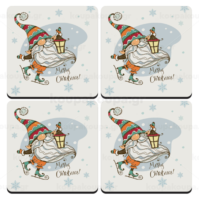Christmas nordic gnomes, ΣΕΤ 4 Σουβέρ ξύλινα τετράγωνα (9cm)