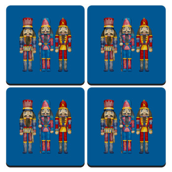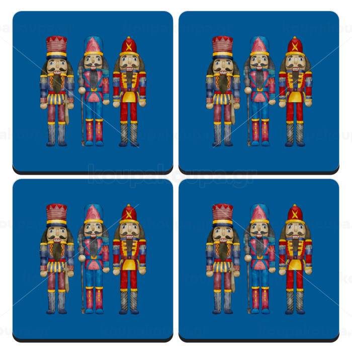 Christmas Nutcrackers, ΣΕΤ 4 Σουβέρ ξύλινα τετράγωνα (9cm)