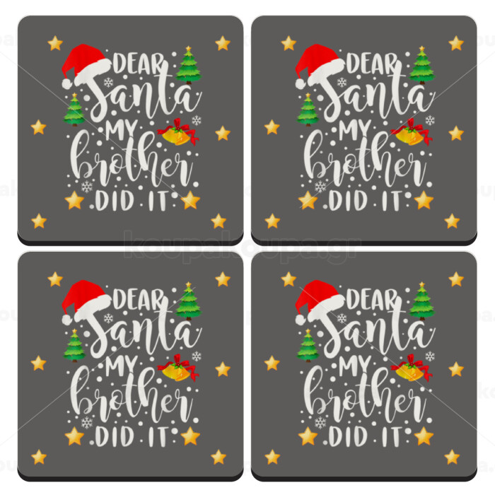 Dear santa my Brother did it, ΣΕΤ 4 Σουβέρ ξύλινα τετράγωνα (9cm)