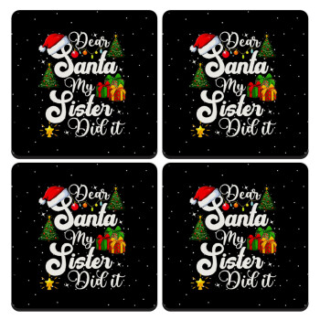 Dear santa my Sister Did it, ΣΕΤ 4 Σουβέρ ξύλινα τετράγωνα (9cm)
