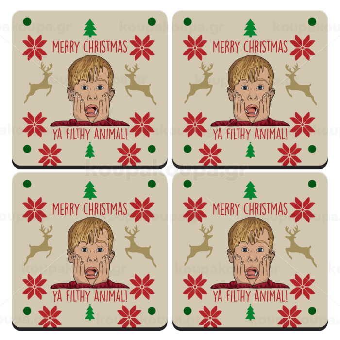 Glossy wooden (MDF) coasters, set of 4 pieces, tremendous durability in wet and hot dishes. Protects table surfaces.