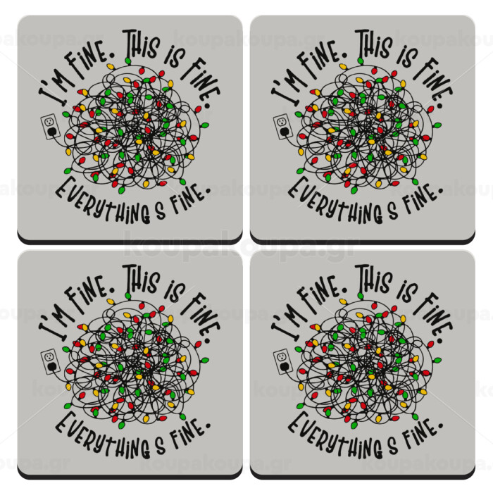 It's Fine I'm Fine Everything Is Fine, ΣΕΤ 4 Σουβέρ ξύλινα τετράγωνα (9cm)