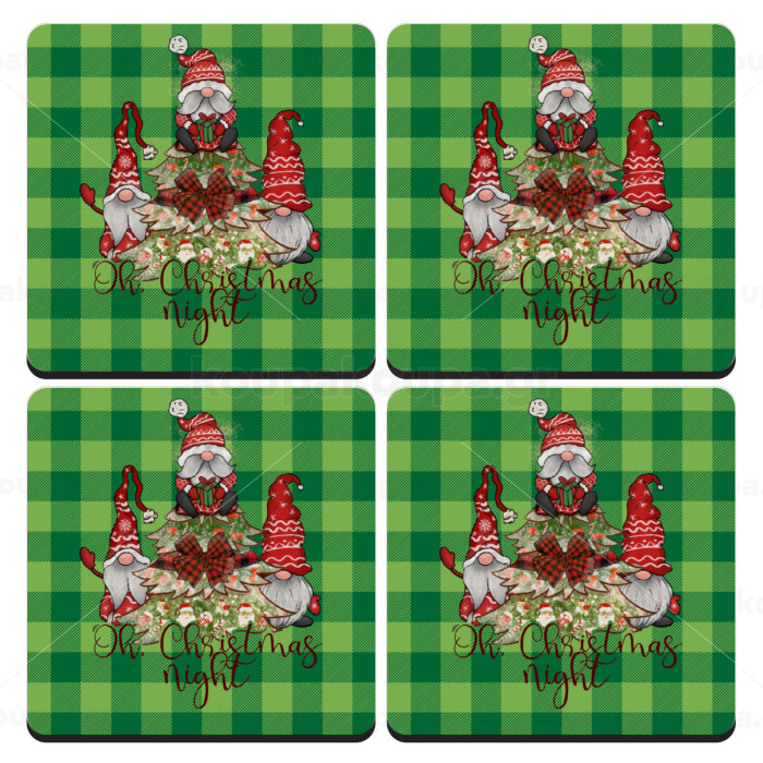 Oh Christmas Night, ΣΕΤ 4 Σουβέρ ξύλινα τετράγωνα (9cm)