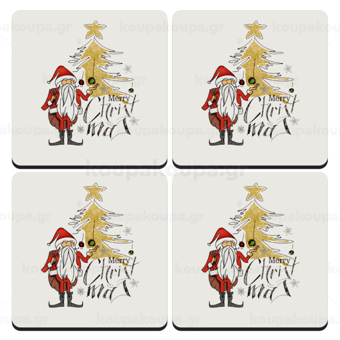 Santa Claus gold, ΣΕΤ 4 Σουβέρ ξύλινα τετράγωνα (9cm)