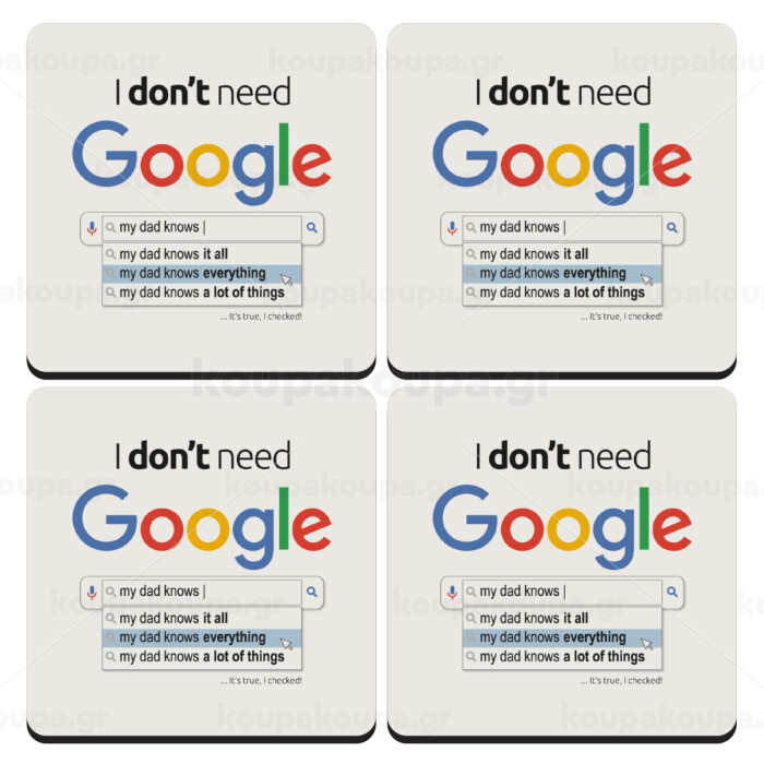 I don't need Google my dad..., ΣΕΤ 4 Σουβέρ ξύλινα τετράγωνα (9cm)