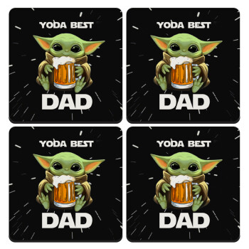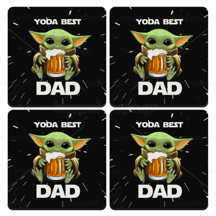 Yoda Best Dad, ΣΕΤ 4 Σουβέρ ξύλινα τετράγωνα (9cm)