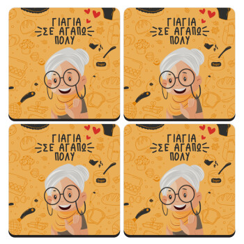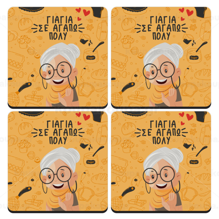 Γιαγιά σε αγαπώ πολύ!, ΣΕΤ 4 Σουβέρ ξύλινα τετράγωνα (9cm)