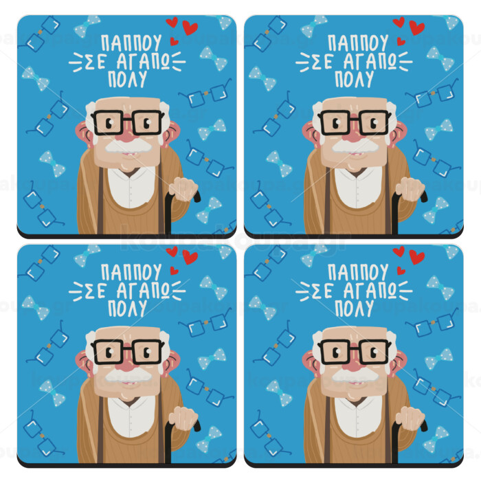 Παππού σε αγαπώ πολύ!, ΣΕΤ 4 Σουβέρ ξύλινα τετράγωνα (9cm)