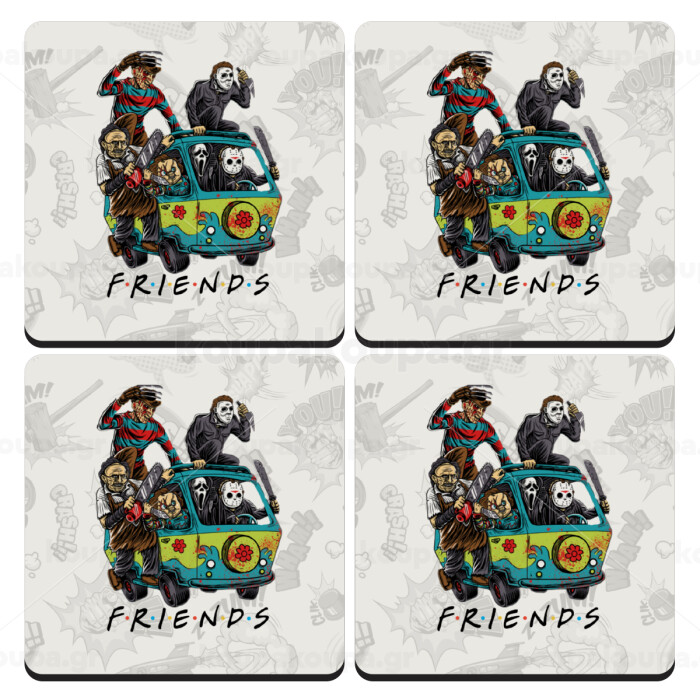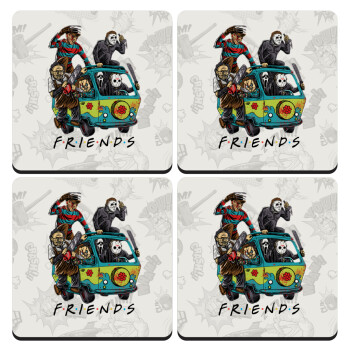 Halloween Friends Scooby Doo, ΣΕΤ 4 Σουβέρ ξύλινα τετράγωνα (9cm)