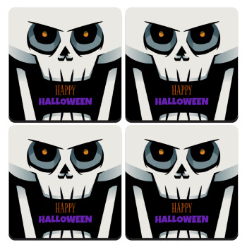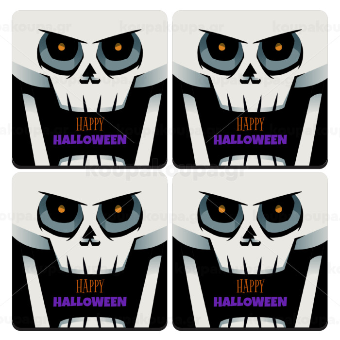 Halloween trick or treat Skeleton, ΣΕΤ 4 Σουβέρ ξύλινα τετράγωνα (9cm)