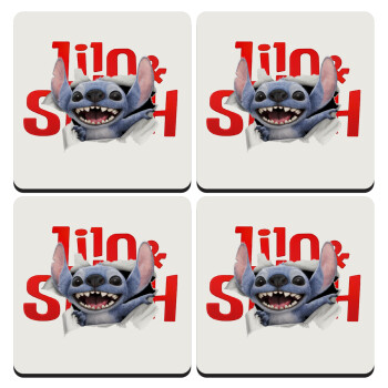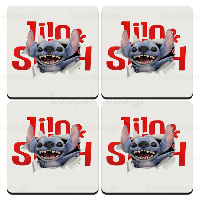 Stitch movie, ΣΕΤ 4 Σουβέρ ξύλινα τετράγωνα (9cm)