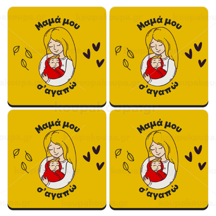 Μανούλα σ'αγαπώ αγκαλιά!, ΣΕΤ 4 Σουβέρ ξύλινα τετράγωνα (9cm)