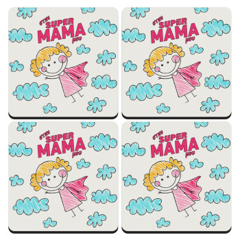 Στην SUPER μαμά μου, comic, ΣΕΤ 4 Σουβέρ ξύλινα τετράγωνα (9cm)