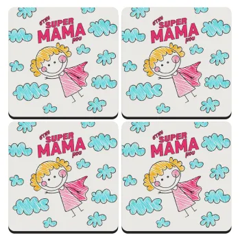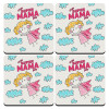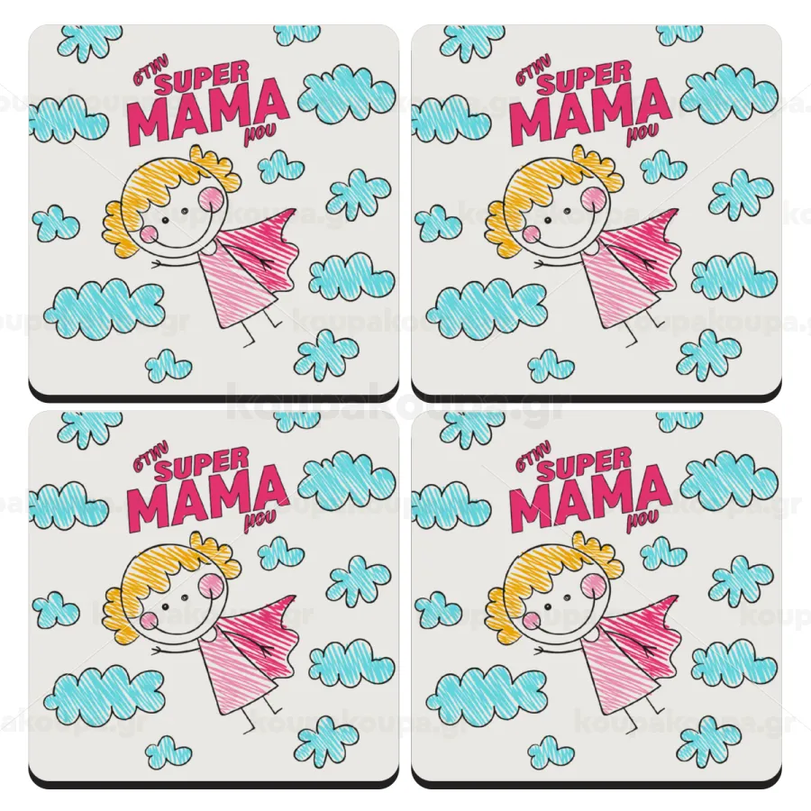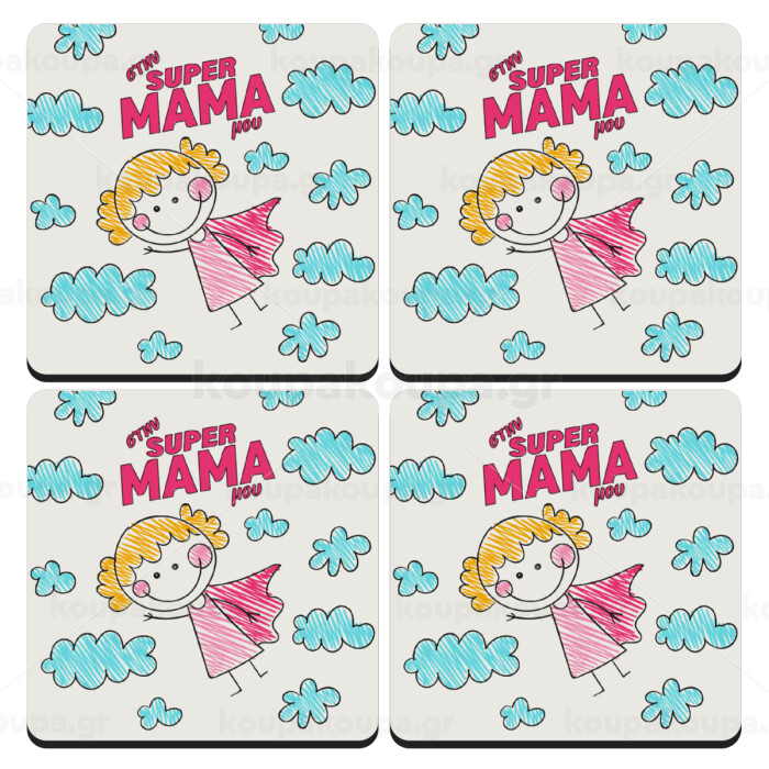 Στην SUPER μαμά μου, comic, ΣΕΤ 4 Σουβέρ ξύλινα τετράγωνα (9cm)