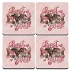 Best mom ever Mother's Day, ΣΕΤ 4 Σουβέρ ξύλινα τετράγωνα (9cm)