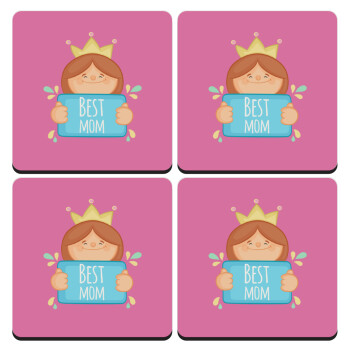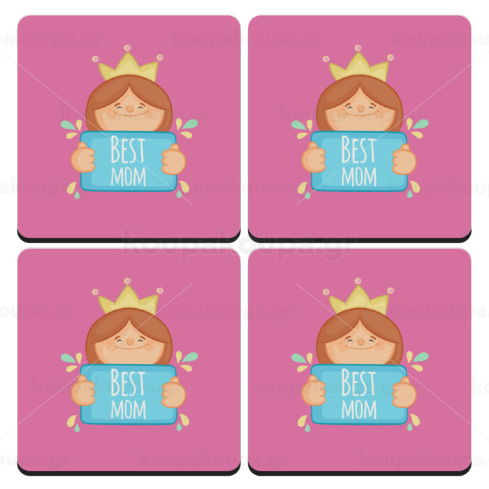 Best mom Princess, ΣΕΤ 4 Σουβέρ ξύλινα τετράγωνα (9cm)