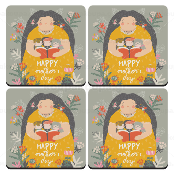 Cute mother reading book, happy mothers day, ΣΕΤ 4 Σουβέρ ξύλινα τετράγωνα (9cm)