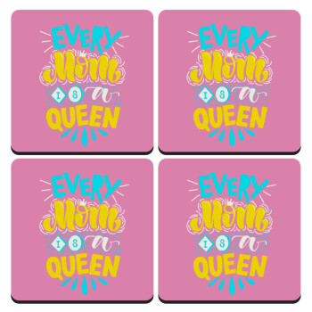 Every mom is a Queen, ΣΕΤ 4 Σουβέρ ξύλινα τετράγωνα (9cm)