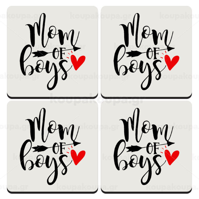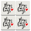 Mom of boys, ΣΕΤ 4 Σουβέρ ξύλινα τετράγωνα (9cm)