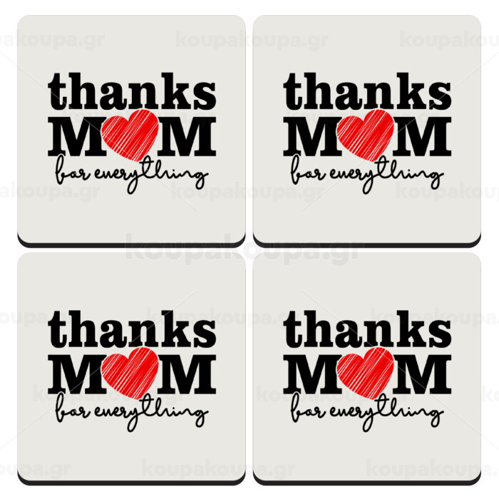 Thanks mom for everything, ΣΕΤ 4 Σουβέρ ξύλινα τετράγωνα (9cm)