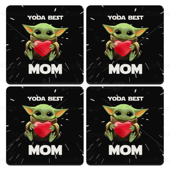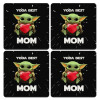Yoda Best mom, ΣΕΤ 4 Σουβέρ ξύλινα τετράγωνα (9cm)