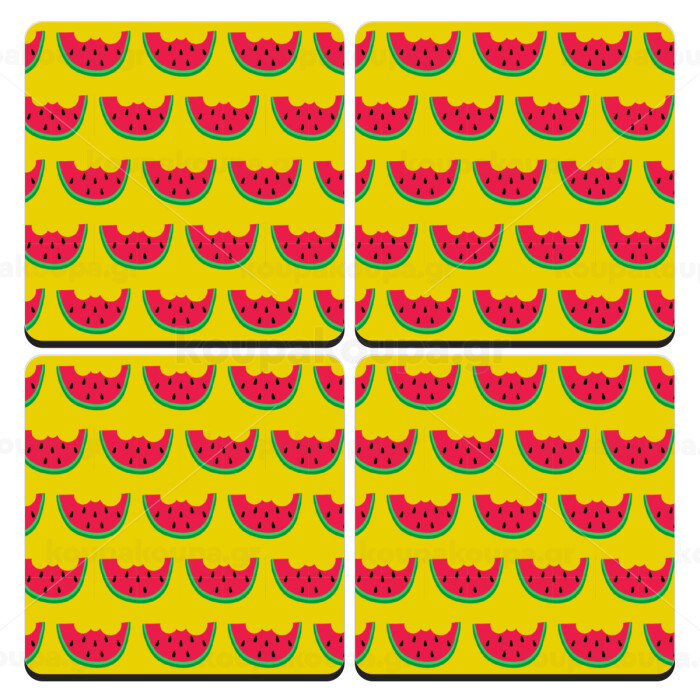 Καρπουζάκια, ΣΕΤ 4 Σουβέρ ξύλινα τετράγωνα (9cm)