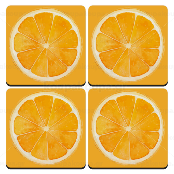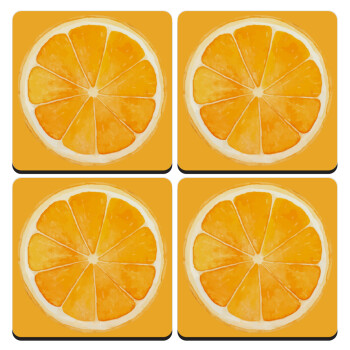 Orange, ΣΕΤ 4 Σουβέρ ξύλινα τετράγωνα (9cm)