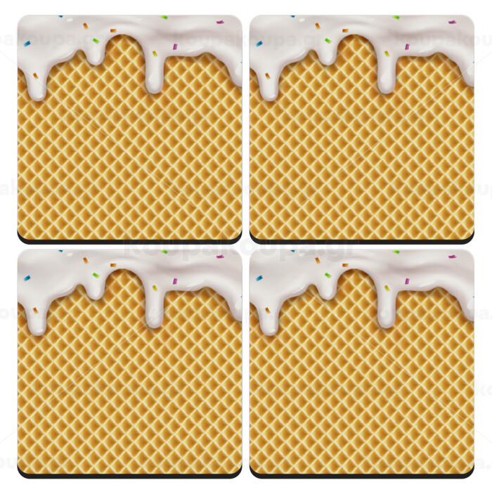 Παγωτό, ΣΕΤ 4 Σουβέρ ξύλινα τετράγωνα (9cm)