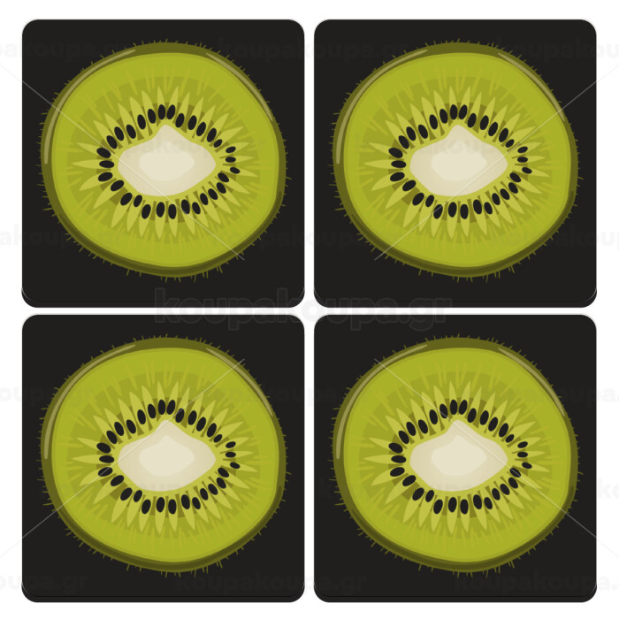 Kiwi, ΣΕΤ 4 Σουβέρ ξύλινα τετράγωνα (9cm)