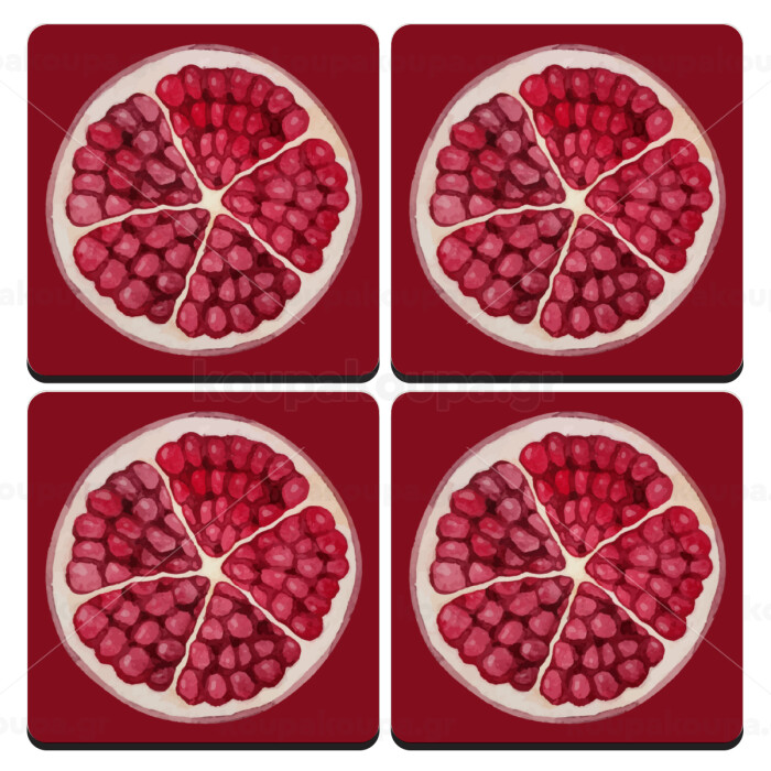 pomegranate, ΣΕΤ 4 Σουβέρ ξύλινα τετράγωνα (9cm)